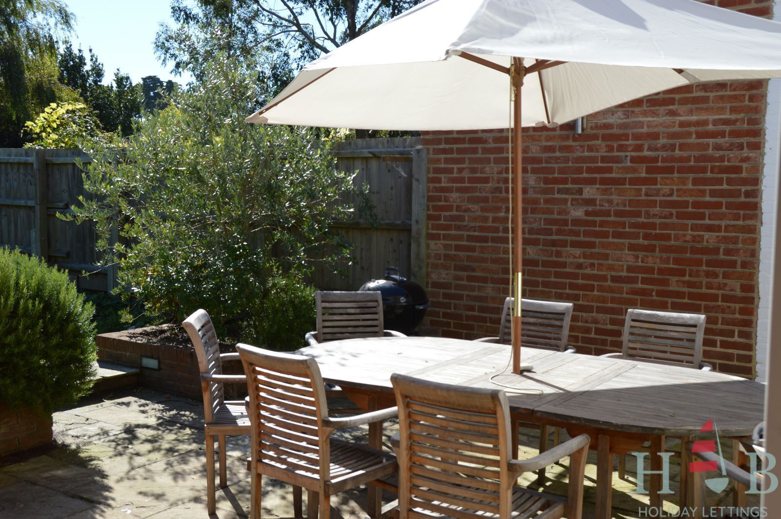 Outside : terrace area with outside table (seating 8). Large, enclosed lawned garden with herbaceous boarders. BBQ. To the front, off street parking for 2 cars.