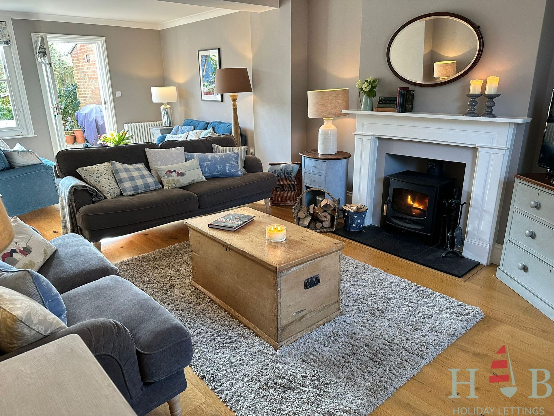 Sleeping 6, its bright and well equipped kitchen is the hub of the house and leads out to a sunny terrace and large enclosed garden. Situated just a minute’s walk from the beach, with its log burner and comfy sofas, Hilda Cottage is a welcoming retreat at any time of the year. Off-street parking. A well behaved dog is welcome upon request. We highly recommend Hilda Cottage.
