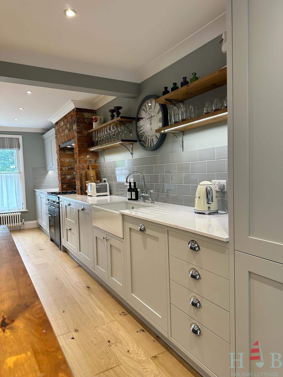 Range Cooker Gas hob; electric double oven; Microwave; Dishwasher; Fridge Freezer; Washing machine & dryer; Toaster; Kettle; Smart TV; Sonos Sound system; Roberts radio (istream).
