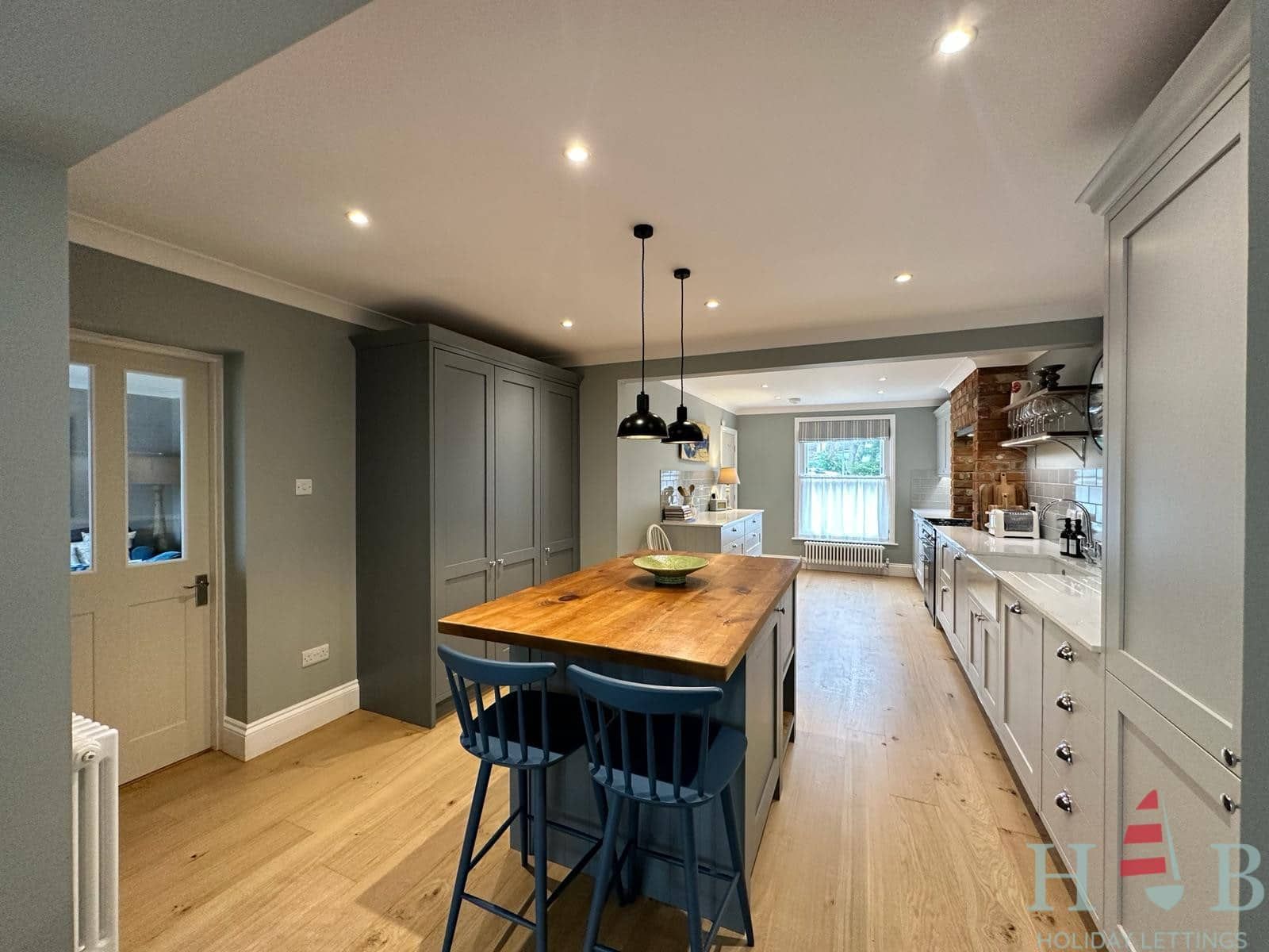 Number One Bembridge House features a luxurious downstairs en suite bedroom, complete with sliding doors that open up to the tranquil garden. It’s the perfect space to unwind, enjoy some privacy, and connect with nature. For families, the house offers two additional king-size bedrooms, ensuring everyone has plenty of room to relax and feel at home.