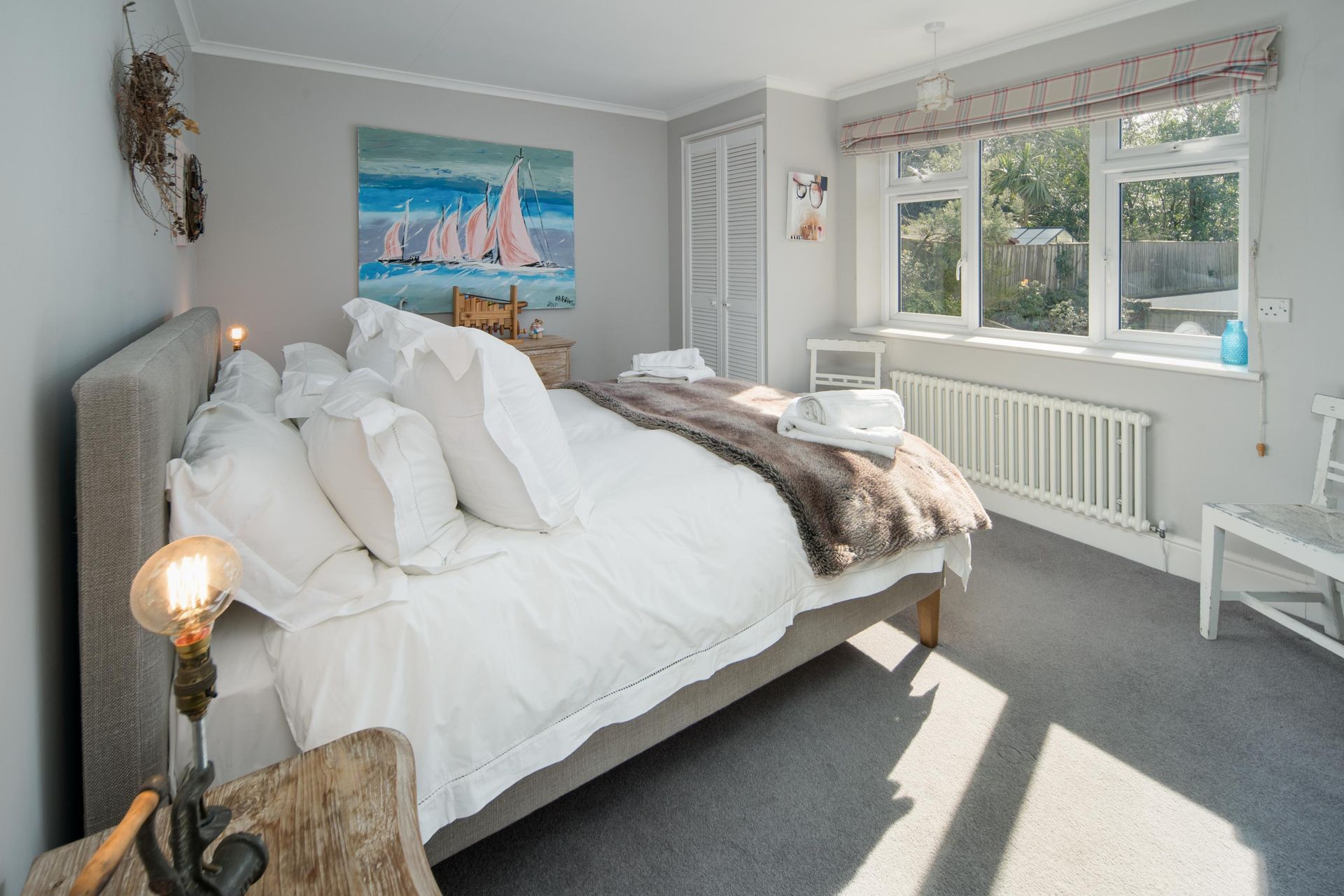 Number One Bembridge House features a luxurious downstairs en suite bedroom, complete with sliding doors that open up to the tranquil garden. It’s the perfect space to unwind, enjoy some privacy, and connect with nature. For families, the house offers two additional king-size bedrooms, ensuring everyone has plenty of room to relax and feel at home.