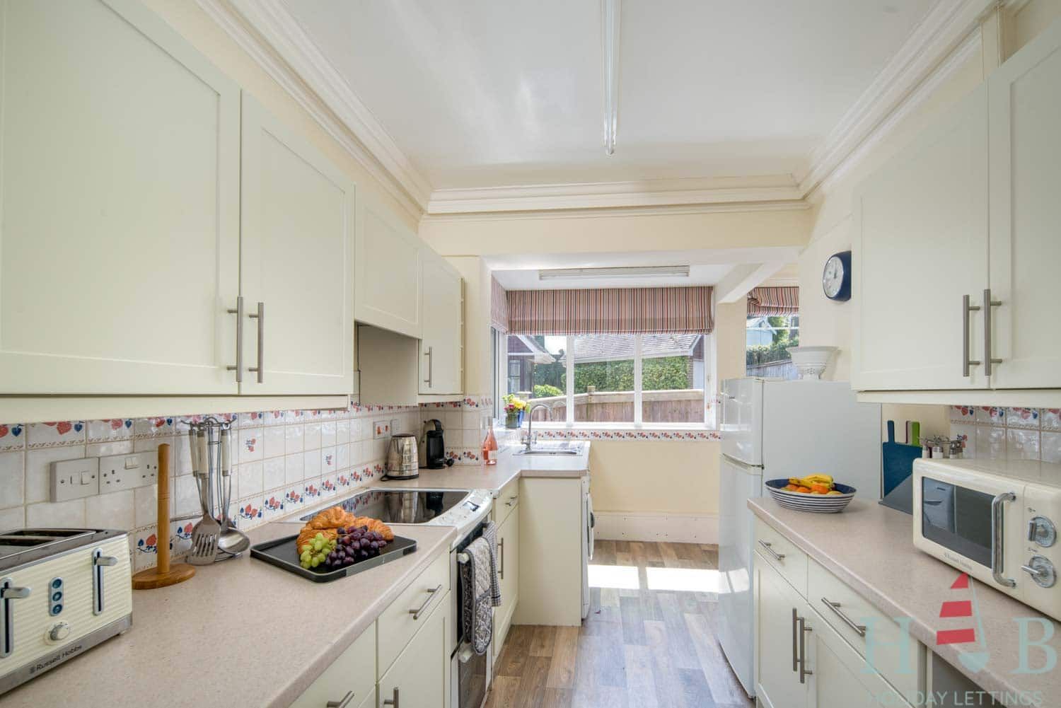 Electric hob; electric oven; Microwave; Washing machine; Fridge freezer; Toaster; Kettle; TV in living room