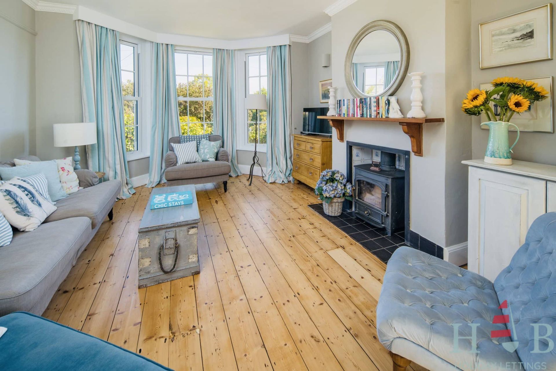 Newly and beautifully refurbished, this stylish and cosy Victorian villa is in the charming village of St Helens on the Isle of Wight. A short walk to the beach and just off a picturesque village green, it sleeps 8 in four double bedrooms (one downstairs) with pets welcome. Airy and light with bay views, it features stripped wooden floors, a fireplace with wood-burning stove, stunning open-plan kitchen, dining and sitting room; garden room with additional seating/eating space, four double bedrooms, three bathrooms and a downstairs cloakroom and utility room. It has a pretty wrap-around cottage garden and raised terrace with distant views of Bembridge bay and the sea beyond for eating and relaxing.