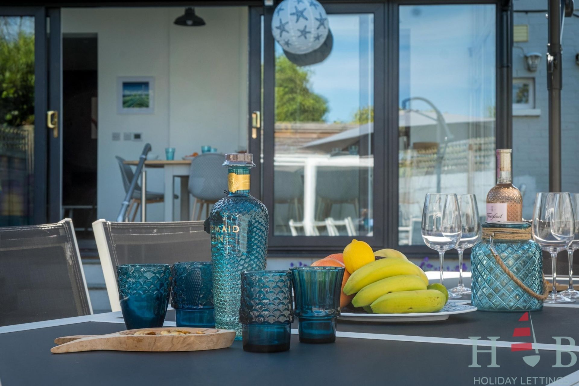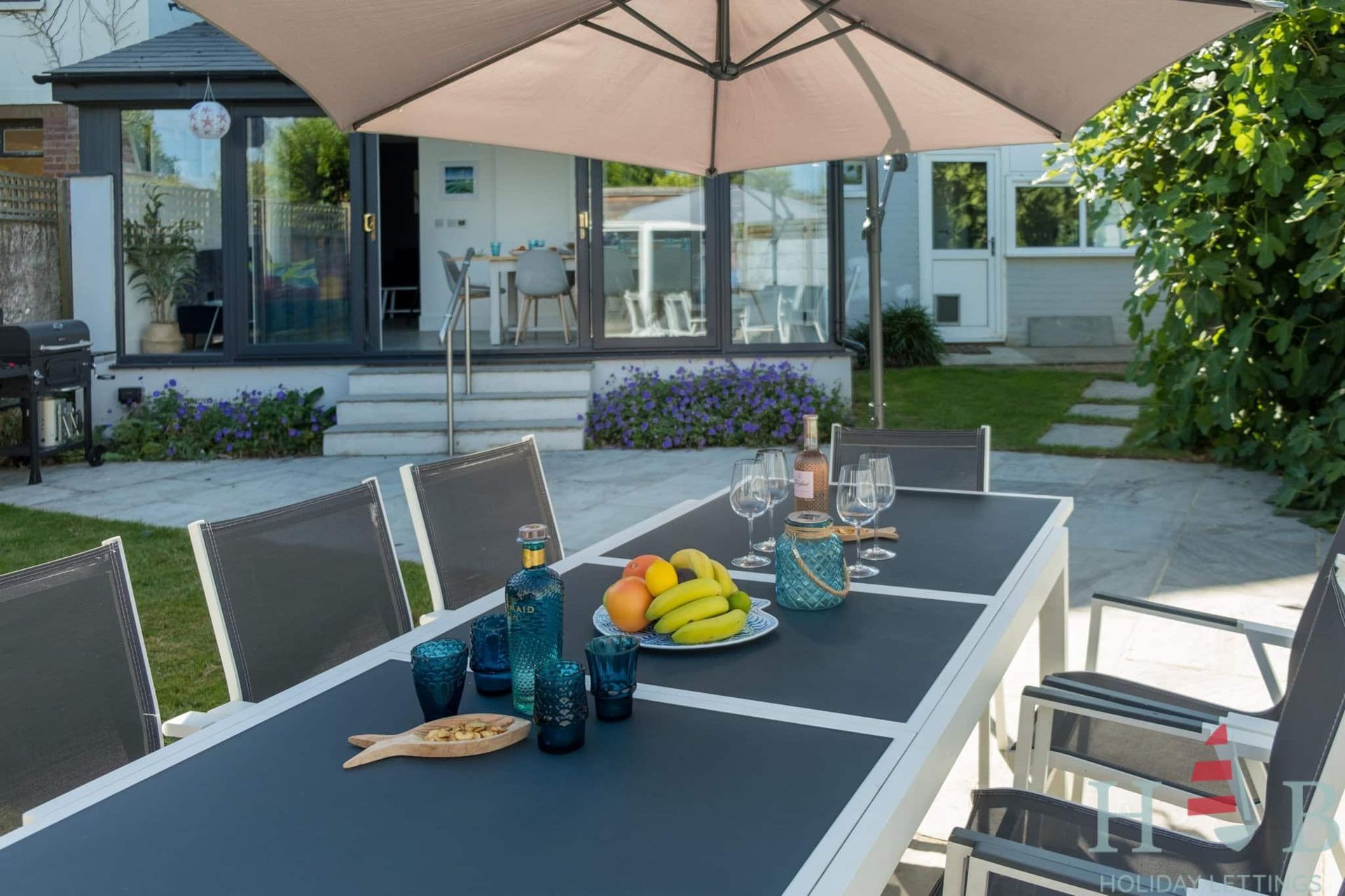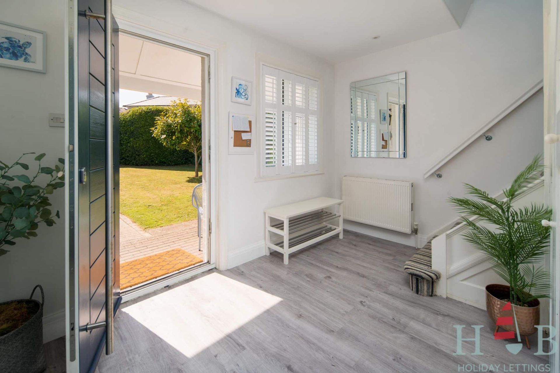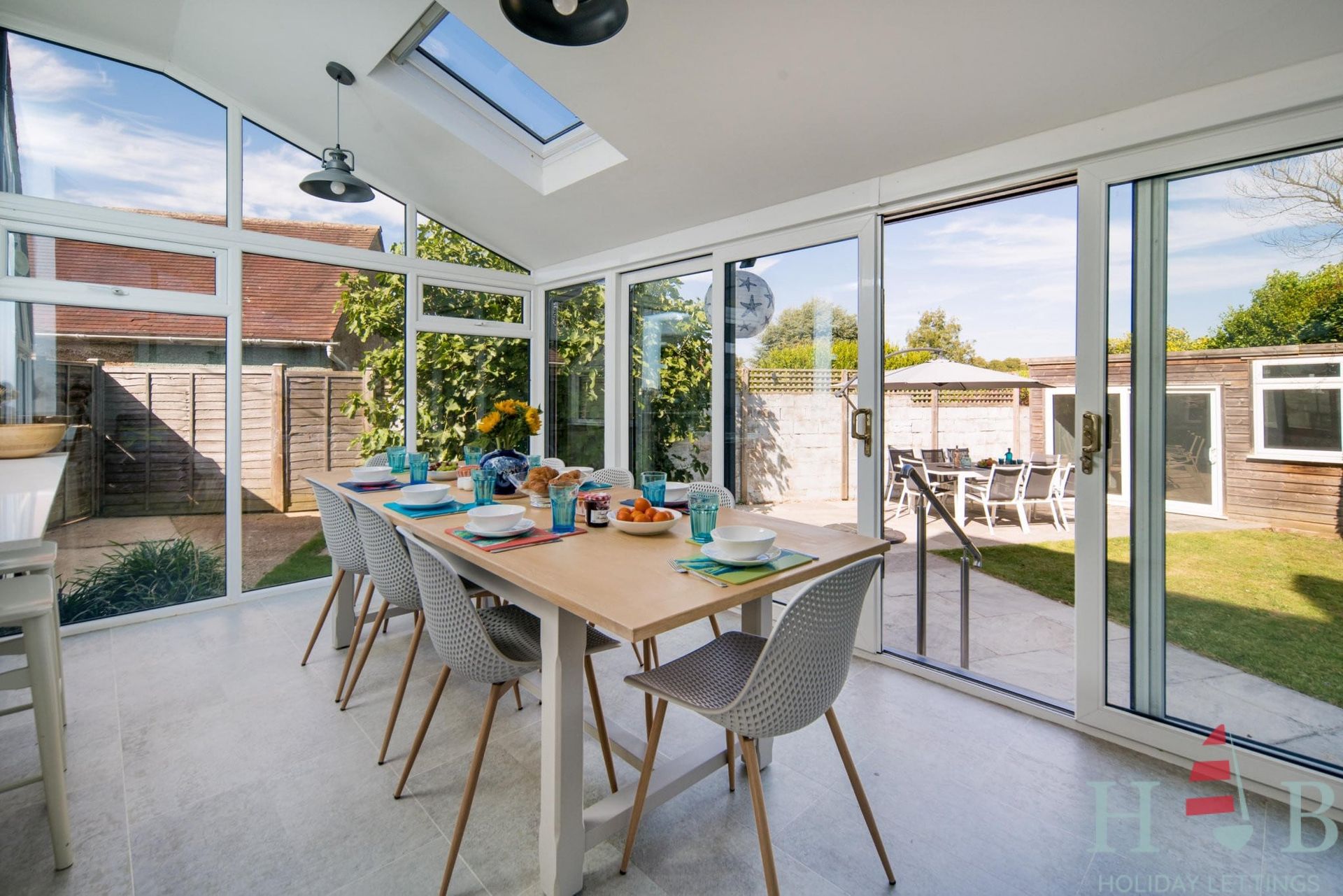 Arrive and parking for up to 3 cars in your private drivewayin the center of Bembridge! Large secluded front, sunny garden and door into the large hallway with cupboard for hanging coats etc. To the right is a living room which can be used as 4th bedroom; comfortable seating including a king size pocket sprung sofa bed, smart TV and windows facing out to the front garden. Across the hallway is shower/WC and WHB. The kitchen is the hub of the house, large and bright with integrated appliances and a separate utility room. A snug with L shaped sofa, TV and log burner and through to the dining area; this is within the conservatory area giving the whole room a brightness; seating for 8+ and doors out to the garden.