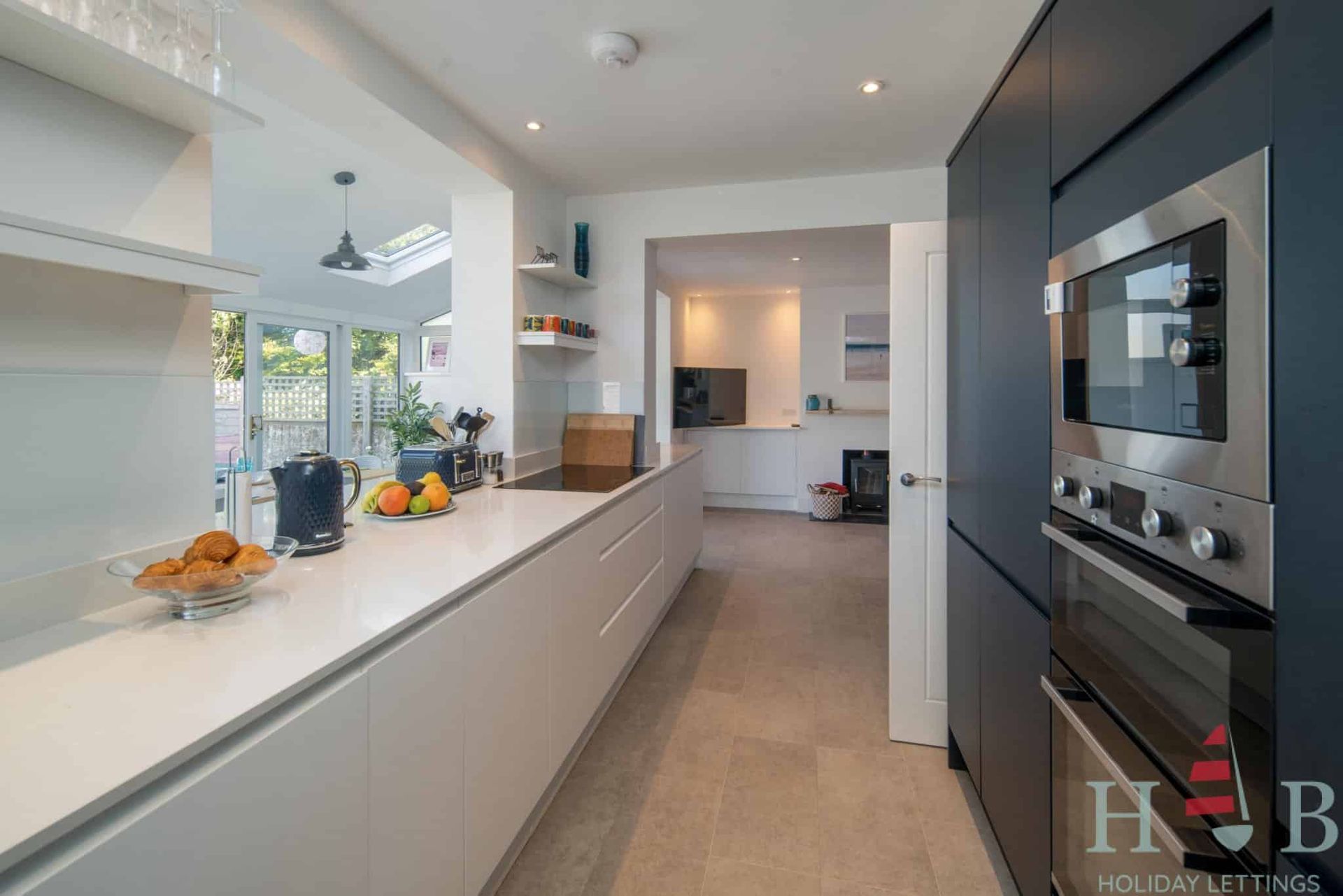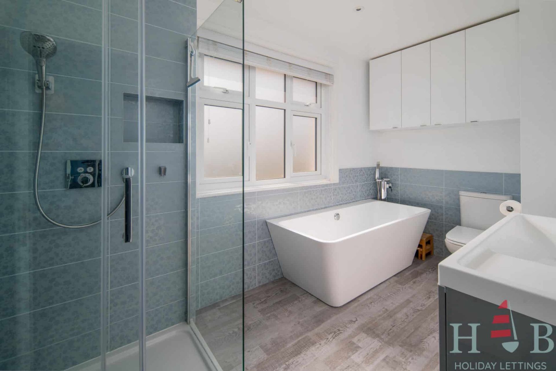 Number One Bembridge House features a luxurious downstairs en suite bedroom, complete with sliding doors that open up to the tranquil garden. It’s the perfect space to unwind, enjoy some privacy, and connect with nature. For families, the house offers two additional king-size bedrooms, ensuring everyone has plenty of room to relax and feel at home.