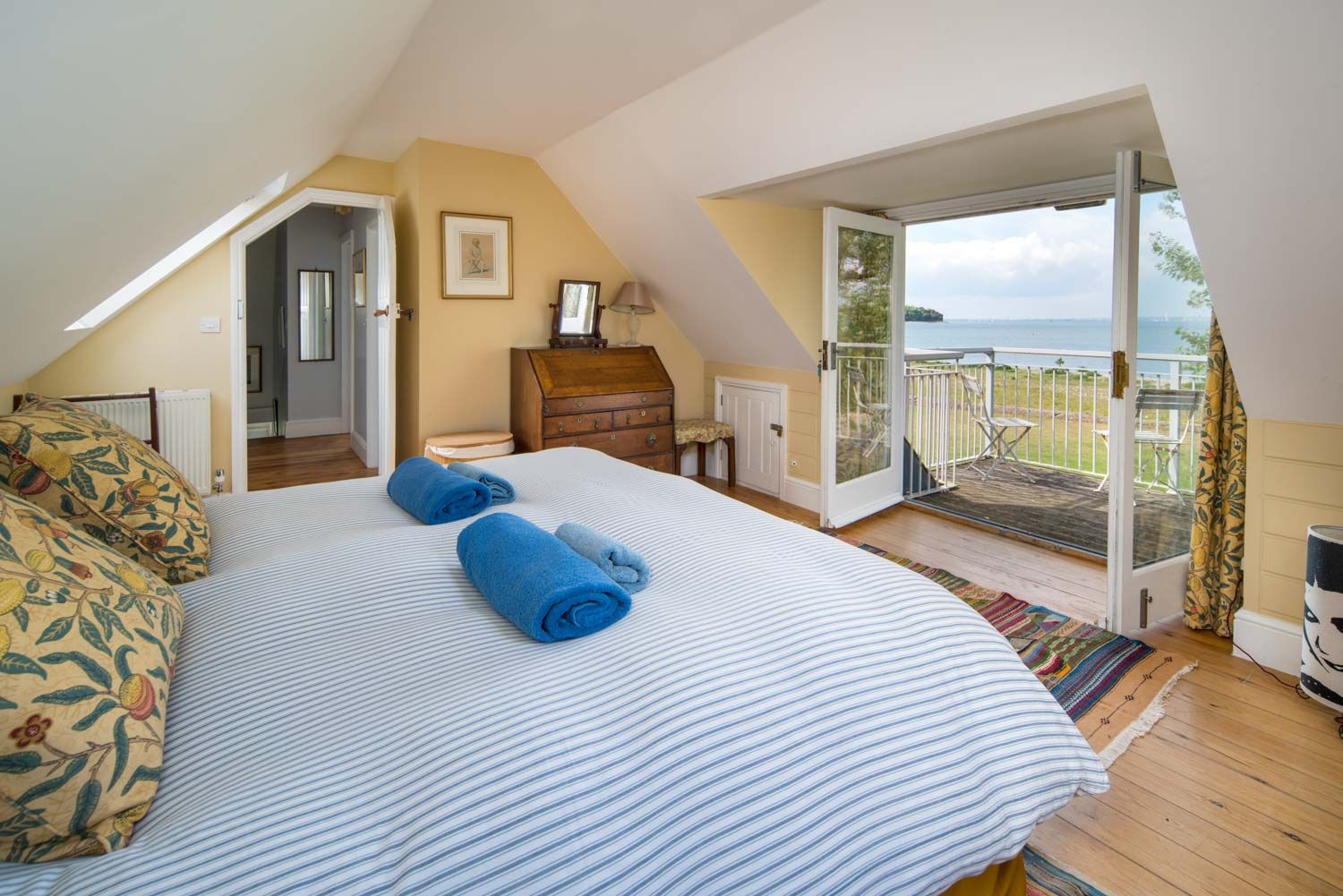 Inside, Sandcove is relaxed, comfortable and made for sharing special moments. The large kitchen and family dining table are perfect for gathering everyone together and spill out in to the terrace for BBQ's and al fresco dining. Upstairs, you’ll find 3 welcoming bedrooms, two with private balconies overlooking the water — the perfect spot for morning coffee or watching the yachts drift past. 1 further double bedroom downstairs and sofa bed in the study.