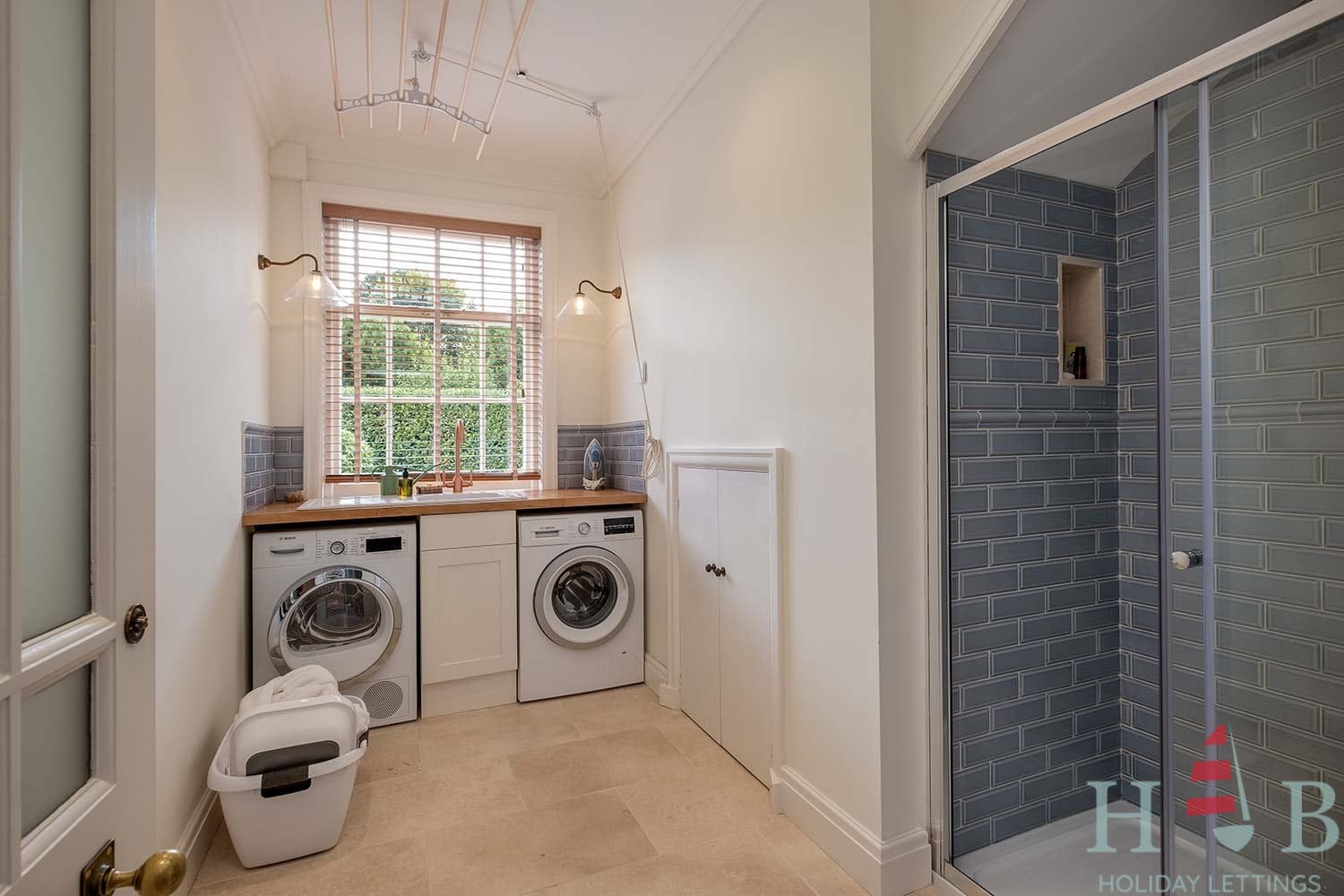 The property spans two generously appointed floors, with each room designed to offer both style and practicality. On the ground floor, you’ll find a large entrance hall leading to a welcoming kitchen and breakfast room, equipped with modern appliances and a convenient larder. The kitchen has a stunning conservatory dining area, where bi-folding doors open up to a private terrace, ideal for al fresco dining. The bright living room is a true sanctuary, featuring comfortable seating, a cosy woodburner, and doors that lead to the lush garden, offering a seamless indoor-outdoor living experience. The separate dining room seats 8-10 guests and also provides access to the garden, while the study/snug offers a cosy retreat with a double sofa bed, a woodburner, and a large Smart TV with games for entertainment. The utility room includes practical amenities such as a washing machine, dryer, and a walk-in shower.