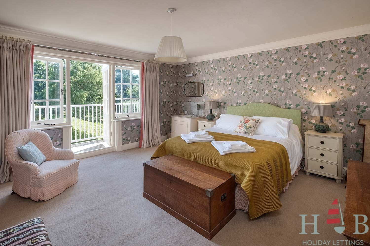 Master Bedroom with a king-size bed, en suite bathroom (bath and shower over) balcony overlooking garden