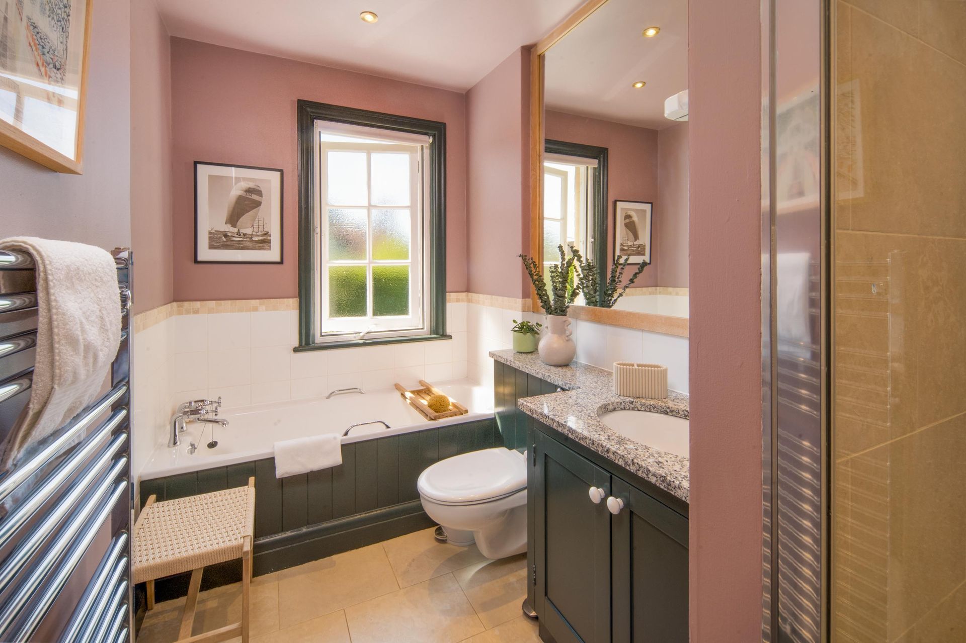 Family Bathroom with bath, walk-in shower, WC, and wash hand basin.