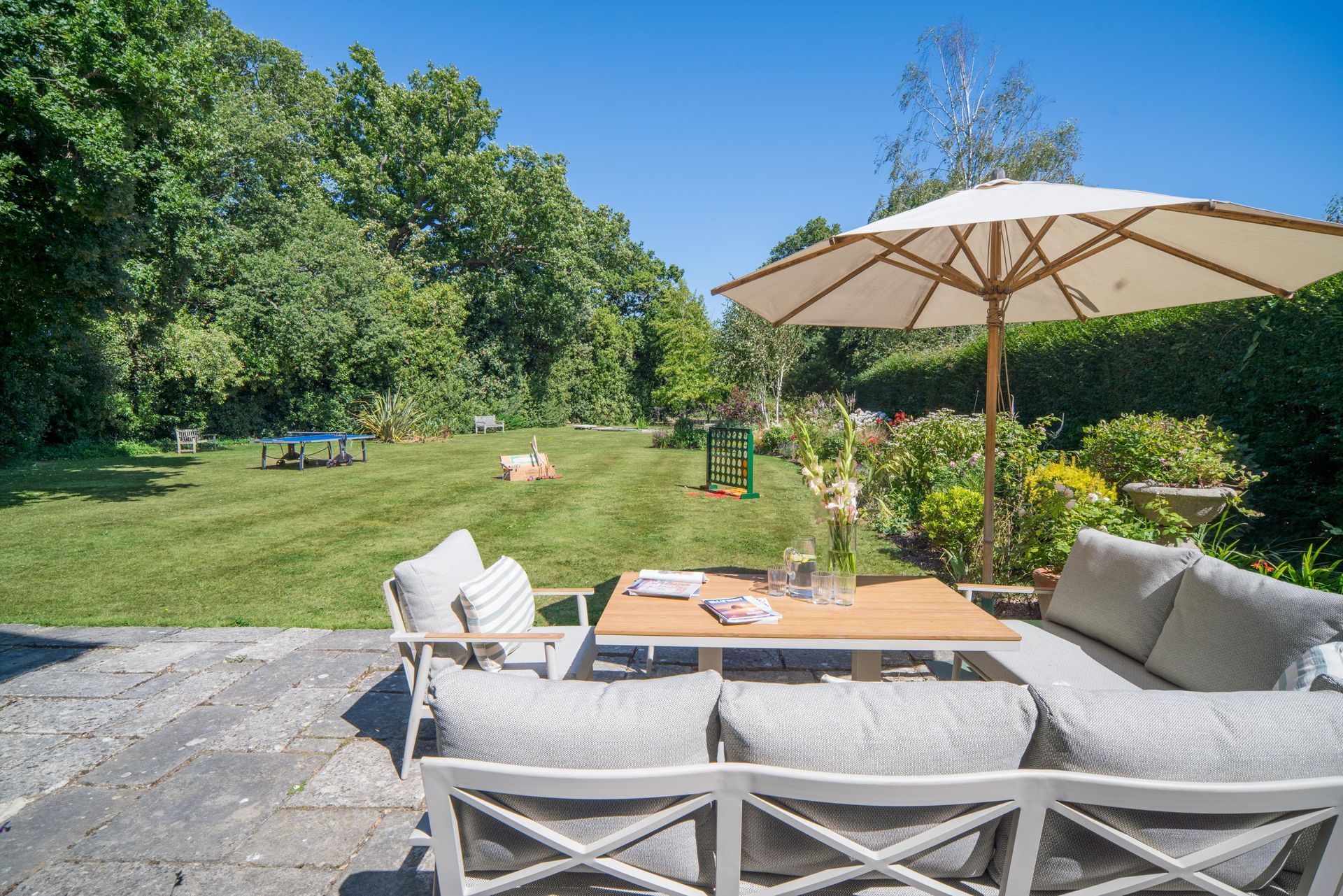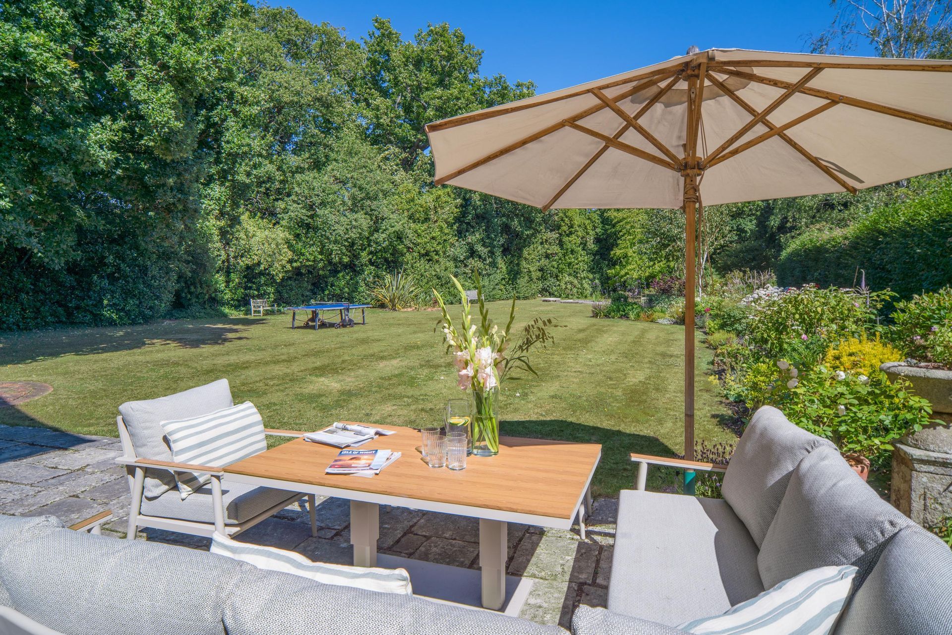 The large, mature garden is a real highlight, offering beautifully landscaped herbaceous borders, an ornamental pond, and ample space for outdoor relaxation. The garden is furnished with two dining tables, parasols, and comfortable seating, perfect for enjoying al fresco meals or soaking in the tranquility. A BBQ, table tennis, and a large paddling pool provide extra fun for all ages, making it an ideal spot for family gatherings.